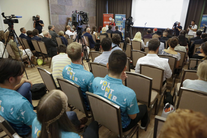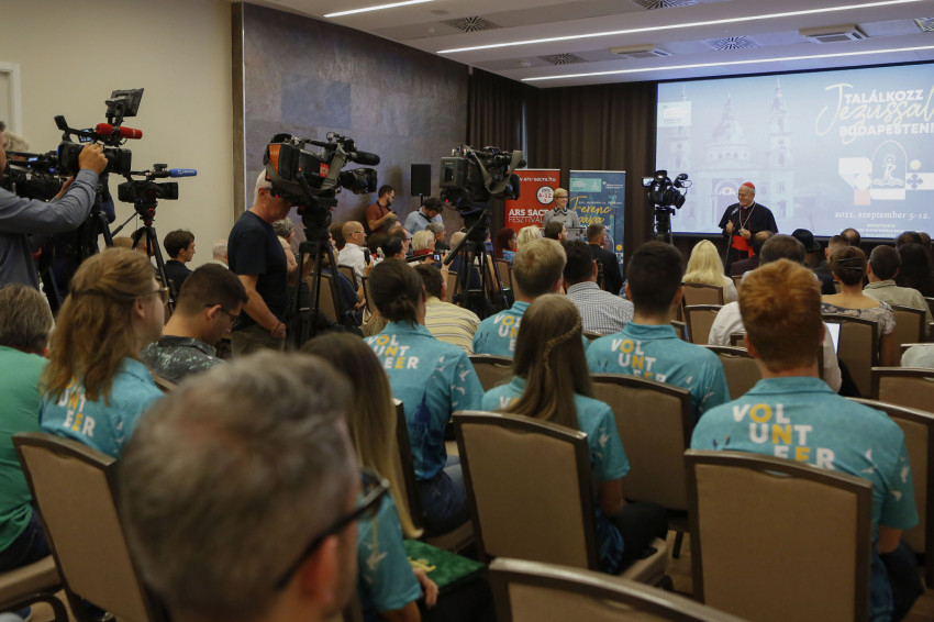Perényi Szilvia, az önkéntes program vezetője elmondta: már augusztus 16. óta 250 önkéntes segíti a szervezők munkáját, és egy nagyságrenddel több segítőjük lesz az esemény idején. Bemutatta az önkéntesek formaruháját, amely zöld, illetve az önkéntes koordinátorokét, amely sárga színű. Mindkettőn a rendezvény helyszínei, a Duna és az emberek összekötésének szimbolikus jelentésével is bíró Lánchíd szerepel. Pio atya is rákerült a pólók ujjára, mivel ő a kamasz fiatalok és az önkéntesek védőszentje. Mi készen állunk, kezdődhet a kongresszus – mondta Perényi Szilvia.
