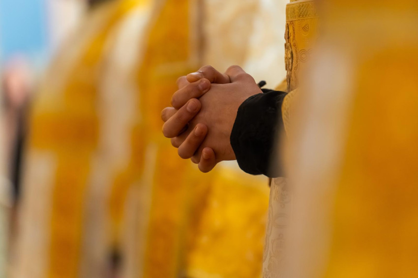 az alszerpapi köntös és az orárion felöltése Isten ölelő karjait jelképezi.