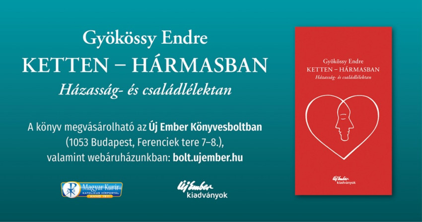 Gyökössy Endre: „Ketten – hármasban, Házasság- és családlélektan” című kötete megvásárolható az Új Ember könyvesboltban (Budapest, V. kerület, Ferenciek tere 7–8. Nyitvatartás: hétfő, kedd, csütörtök, péntek: 9–17 óráig; szerdán 10–18 óráig) vagy megrendelhető az Új Ember online könyváruházban.