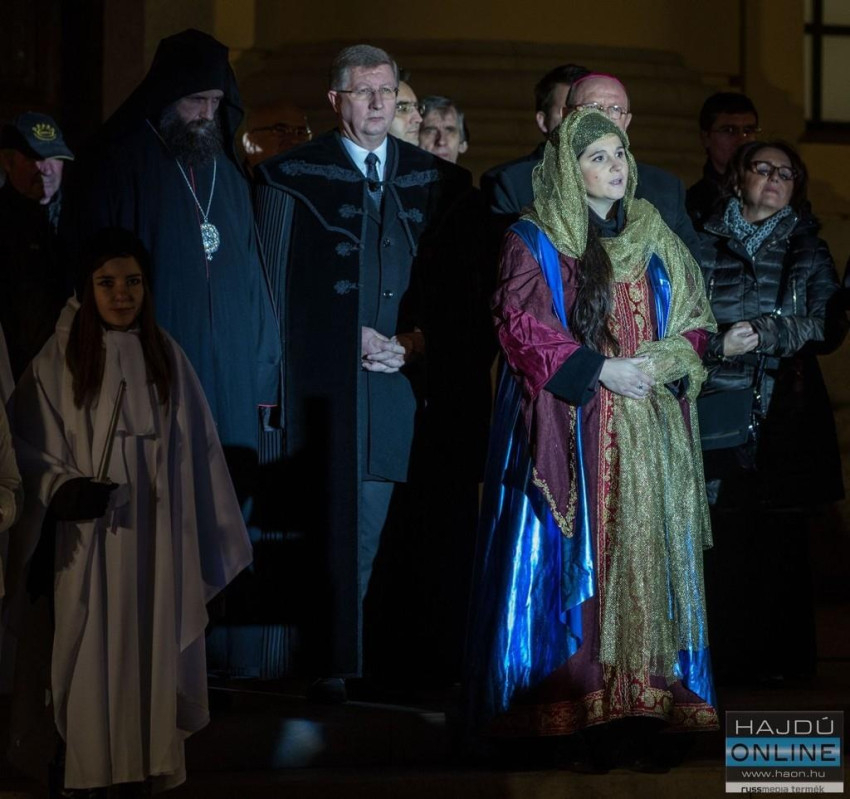 Az adventi készülődést református istentisztelet nyitotta a debreceni nagytemplomban, majd a Kossuth téren rendezett ünnepi műsorban Újhelyi Kinga Jászai-díjas színművész adta elő Szarka Tamás Mária című musicaljének egyik betétdalát. Az ünnepi programban közreműködött Mercs Angéla operaénekes, az Ady Endre Gimnázium leánykara, a Kuckó Művésztanya és a Debreceni Népi Együttes is, akiknek hagyományőrző ünnepi pásztorjátékát láthatta a többezres nézőközönség.