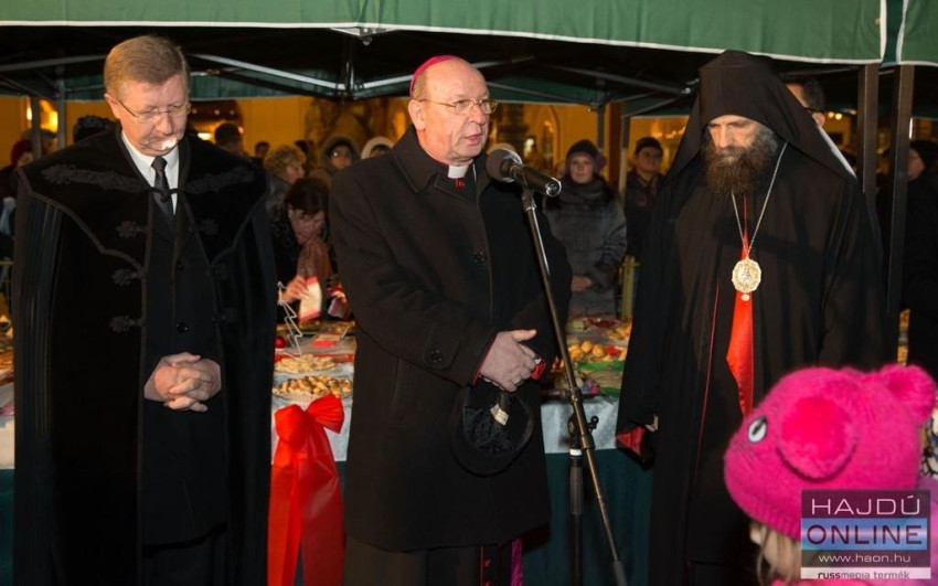 Papp László, Debrecen város polgármestere ünnepi beszédében elmondta, hogy a szeretet a legfontosabb érték, amit a fa alá tehetünk, ugyanis napjainkban forrong körülöttünk a világ, nincs béke, hanem ellentétek és áldozatok vannak: „Hálát adhatunk Istennek azért, hogy itt, Debrecenben és Magyarországon is képesek vagyunk felekezetre és vallási különbözőségekre tekintet nélkül békében együtt ünnepelni, együtt készülni a karácsonyra, és így várjuk az Úr eljövetelét, hiszen a karácsony összefogja, összetartja a népeket és a nemzeteket, a helyi közösségeket és a családokat is.”