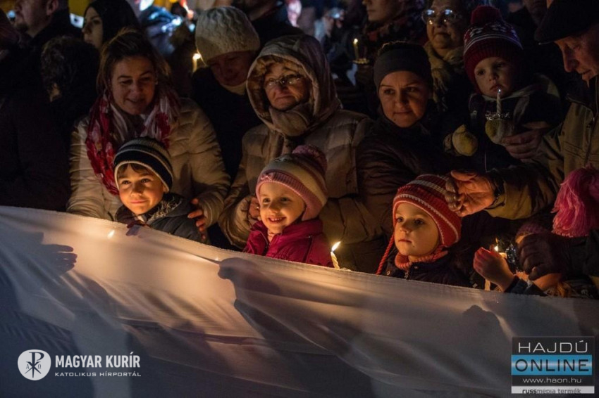 Az adventi gyertya meggyújtása után Palánki Ferenc, a Debrecen-Nyíregyházi Egyházmegye püspöke Lukács evangéliumából olvasott fel egy részletet, és arról beszélt, hogy hibát követünk el, ha csak a mulandó dolgokra figyelünk, a ruhára, ételre, italra, szórakozásra, mert akkor csupán a földre szegezzük a tekintetünket. Isten azonban azt üzeni, hogy emeljük fel a fejünket.