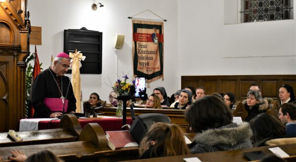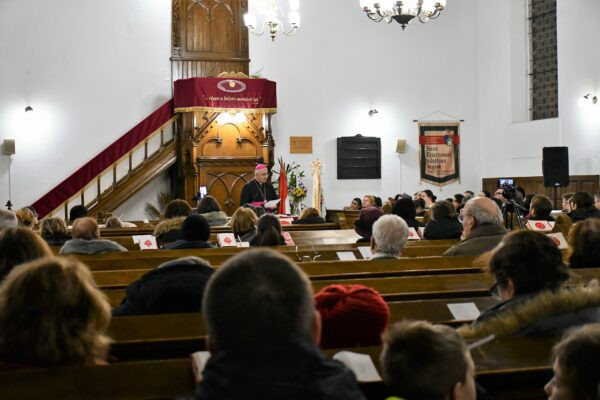 „Azért jöttünk, hogy Krisztussal találkozzunk – mondta homíliájában Pál József Csaba püspök. – Amikor találkozunk Jézus Krisztussal, mindig történik bennünk vagy közöttünk valami. Most is figyeljünk Őrá, hogy mit akar, ma mi történjen bennünk és közöttünk. Köszönjük meg neki a kereszténység ajándékát.