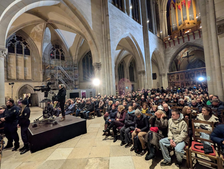 Gerhard Feige katolikus püspök beszédében hangsúlyozta: „Azért vagyunk itt ma este együtt, hogy támaszt nyújtsunk egymásnak, hogy el tudjuk viselni a felfoghatatlant.