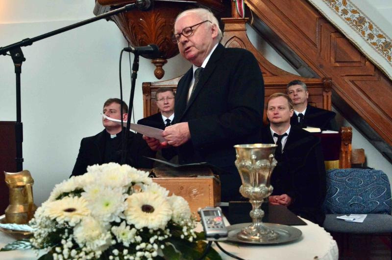 Fekete Károly, a Tiszántúli Református Egyházkerület püspöke beszédében kiemelte, hogy Isten tudja és látja, hogy mikor veszteglünk, mikor irányítja más az életünket. Hozzátette: „Gyöngeségünkben az Úr Szentlelke siet a megsegítésünkre, és három zárat akar felpattintani bennünk. Az első a szolgalelkűség börtönzára, amely azt mutatja, hogy irányítani lehet bennünket, elvehető az önállóságunk, pedig ha a szolgaság érzését felváltja a fiúságé, akkor érezhetjük igazán, hogy Istenhez tartozunk. A másik a szájzár, amely azt akarja elhitetni velünk, hogy nem érdemes és nincs is kihez szólni, pedig boldog ember az, aki nem zárul önmagába, hanem megcélozza Istent a szavával és tovább tudja adni szeretete hangjait.”