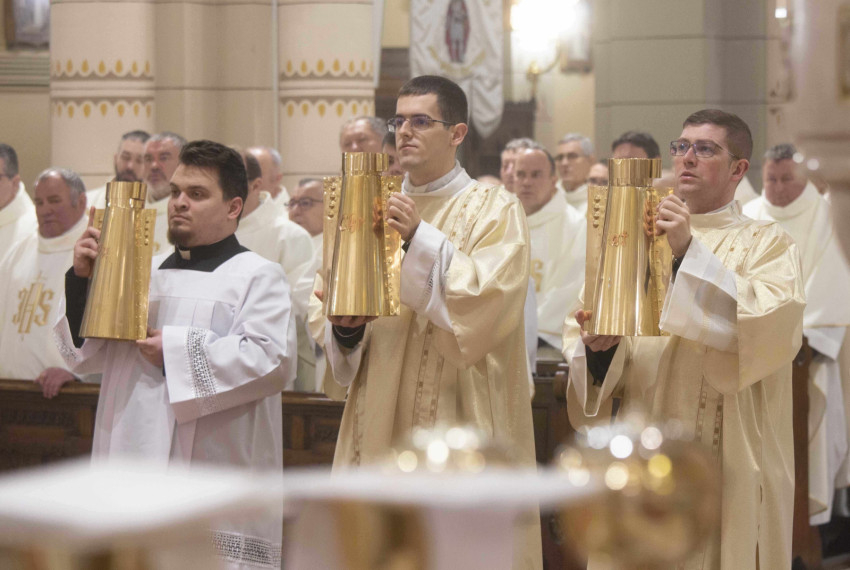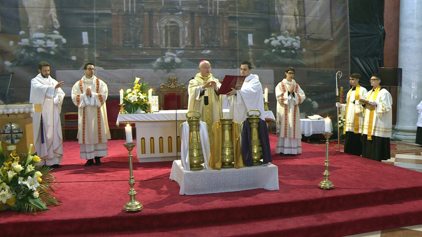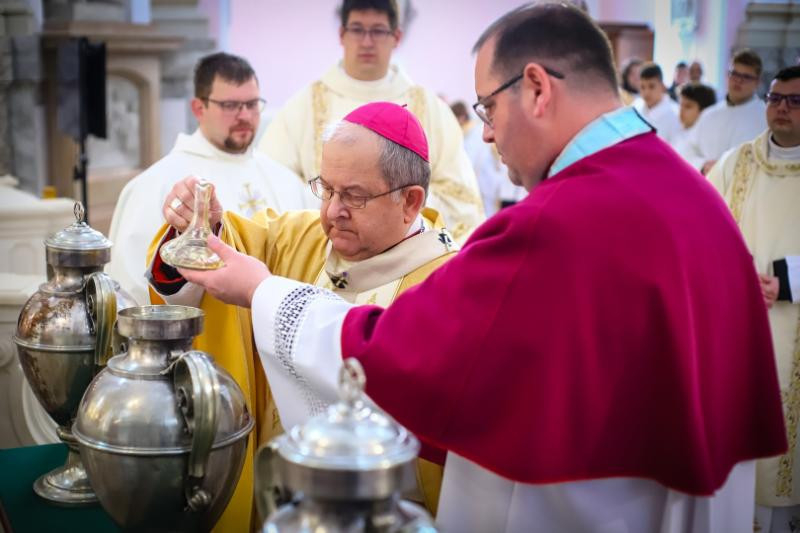 Felföldi László püspök szertartás keretében megszentelte az olajat, melyet a keresztség, a bérmálás, a papszentelés, a templomszentelés vagy a betegek szentségének kiszolgáltatásakor használnak, majd a papság a püspök és Isten szent népe előtt megújította egykor tett papi ígéretét.