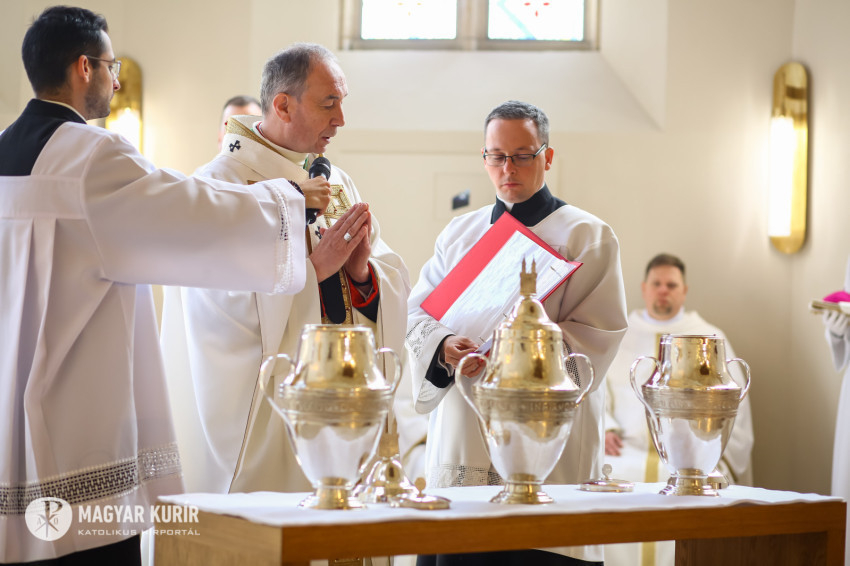 „Pap vagy te mindörökké Melkizedek rendje szerint” (Zsid 5,6) imádkozzuk a zsoltárban minden vasárnap este. Ma, a papság alapításának az ünnepén kicsit ízlelgetjük a szót: örökké, mindörökké; azt, hogy „Az Úr lelke nyugszik rajtam, mert az Úr kent föl engem” (Iz 61,1). Papságunk születésnapján figyeljünk most magunkra, a hivatásunkra, arra, hogy fölkentek vagyunk. A fölkent szó Messiást jelent, de nem mi vagyunk a Messiás, hanem a Messiás képviseletében, szolgálatában végezzük napi dolgainkat, hogy a hétköznapi egyszerű gesztusokat és mozdulatokat, imádságainkat, szentmiséinket, odafordulásunkat az emberekhez összekössük az Örökkévalóval. Jézus nevében örömhírt, evangéliumot hirdetünk, amelynek lényege, hogy Isten végtelenül és feltétel nélkül szeret bennünket, és fontosak vagyunk neki – fogalmazott szentbeszédében Palánki Ferenc megyéspüspök.