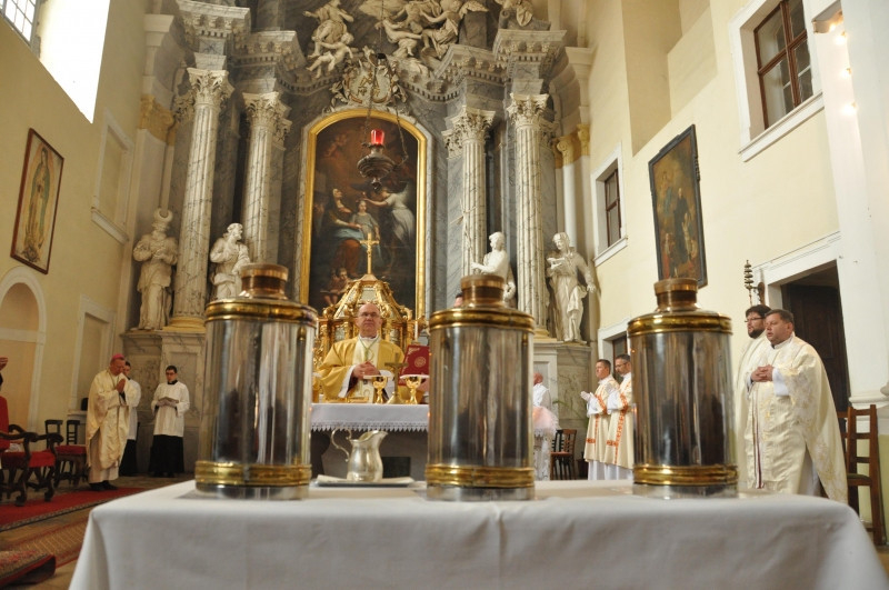 A szent háromnapot bevezető krizmaszentelési szentmisét négy év után ismét a teljes szépségében felújított Székesegyházban mutatta be Spányi Antal püspök az egyházmegye papságával, a diakónusok, kispapok, szerzetesnővérek és számos hívő jelenlétében Székesfehérváron, április 6-án. A papok ennek a misének a keretében újították meg a papszenteléskor tett ígéretüket, majd az olajok megszentelése következett.