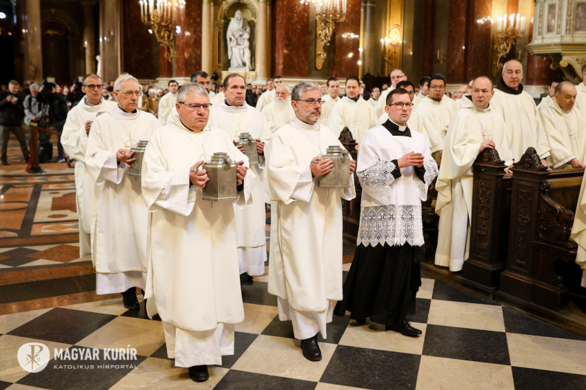 Szavait követően az egyházmegye papjai megújították a szentelésükkor tett ígéreteiket, majd megszentelték a keresztelendők (katekumenek) és a betegek olaját, valamint a krizmát.