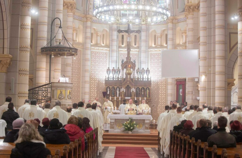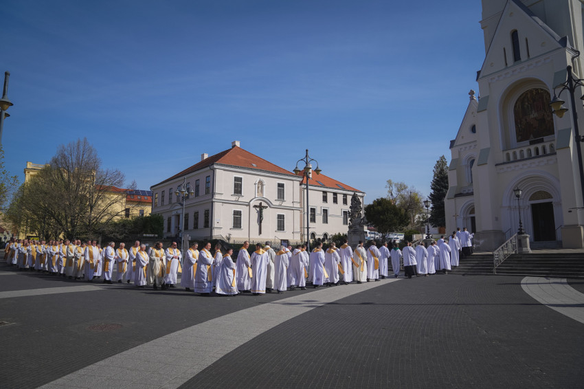 Nagycsütörtök délelőttjén, az Eucharisztia és az egyházi rend alapításának ünnepén Palánki Ferenc debrecen-nyíregyházi megyéspüspök Bosák Nándor nyugalmazott püspök konccelebrálásával mutatott be krizmaszentelési szentmisét a nyíregyházi Magyarok Nagyasszonya-társszékesegyházban.