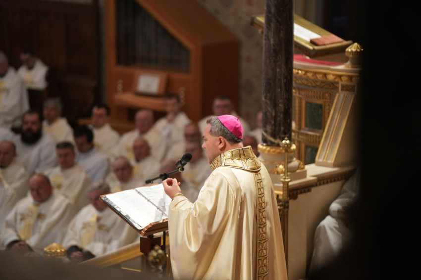 „A krizmaszentelési misén fontos újból és újból tudatosítani magunkban a hivatásunkat: ki a pap? Mire kaptunk meghívást és küldetést?” – így kezdte meg szentbeszédét Marton Zsolt püspök, majd a papi hivatás tanítói, megszentelői és pásztori dimenzióját fejtette ki bővebben, őszinte önvizsgálatra buzdítva a jelenlévő atyákat. „Mit jelent nekem a szentmise, mint lelki életem középpontja? Alaposan ismerem-e az Egyház tanítását, vagy csak rutinom van? Úgy fogom-e fel a hivatalomhoz kötődő tekintélyt, mint szolgálatot?” Többek között ezeket a kérdéseket is feltette a homíliában, a pásztori küldetés kapcsán pedig Ferenc pápa tanítását idézte fel, mely szerint