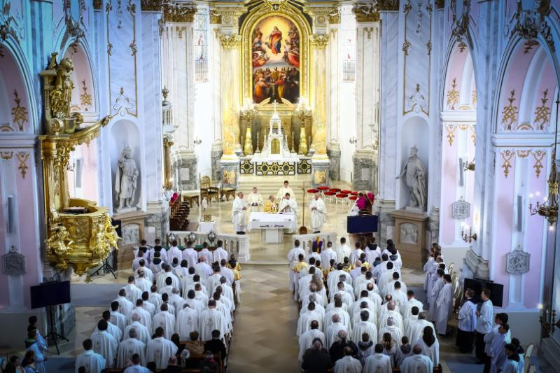 A bíboros az Esztergom-Budapesti Főegyházmegye papságával és az egyházmegye területén szolgáló szerzetespapokkal együtt mutatta be a szentmisét, melyen koncelebráltak Michael Wallace Banach apostoli nuncius, a főegyházmegye segédpüspökei, Mohos Gábor és Martos Levente Balázs, valamint teljes papsága, illetve együtt ünnepeltek a főegyházmegye diakónusai és hívei is.