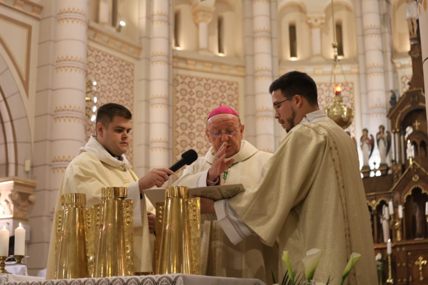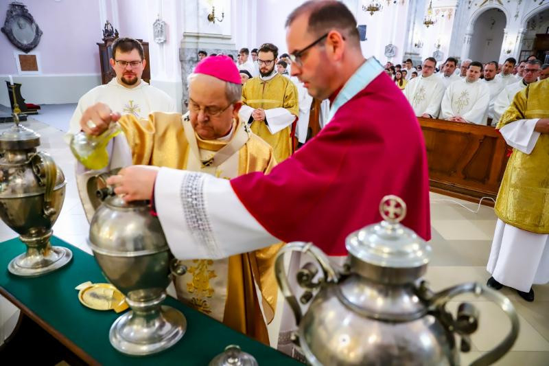 Az olajszentelési szentmise a szent három nap ünneplésének első állomása. A liturgián a papság fogadalomtételén kívül sor került a keresztelendők és a betegek olajának, valamint a – keresztség, bérmálás, egyházi rend kiszolgáltatásakor, illetve templomszenteléskor használatos – krizma megszentelésére is.