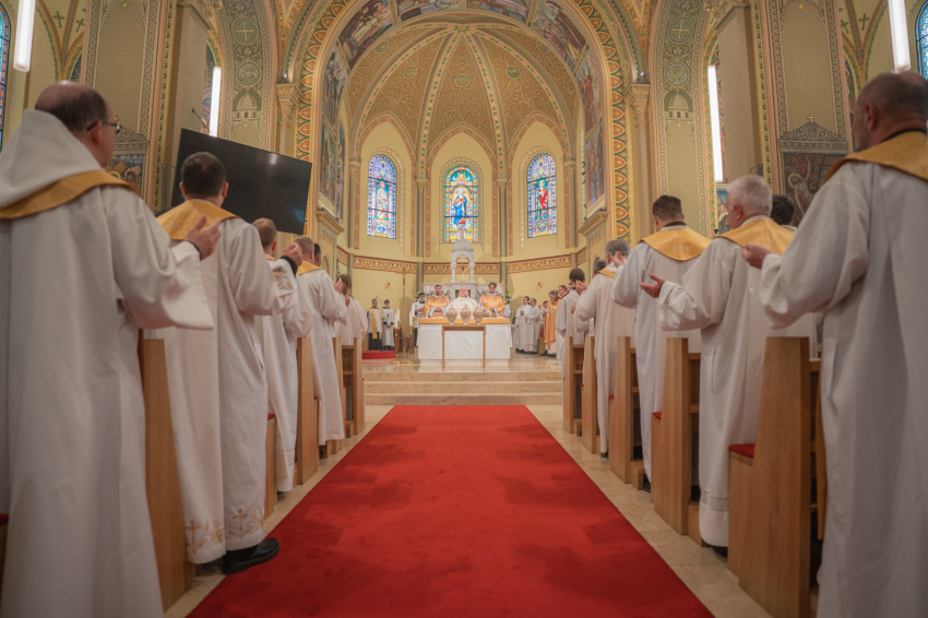 „Az apostolok húsvéti örömével éljük meg húsvét ünnepét, hiszen ezt az örömöt kell megosztanunk a ránk bízottakkal” – fordult paptestvéreihez szentbeszédében Veres András püspök.