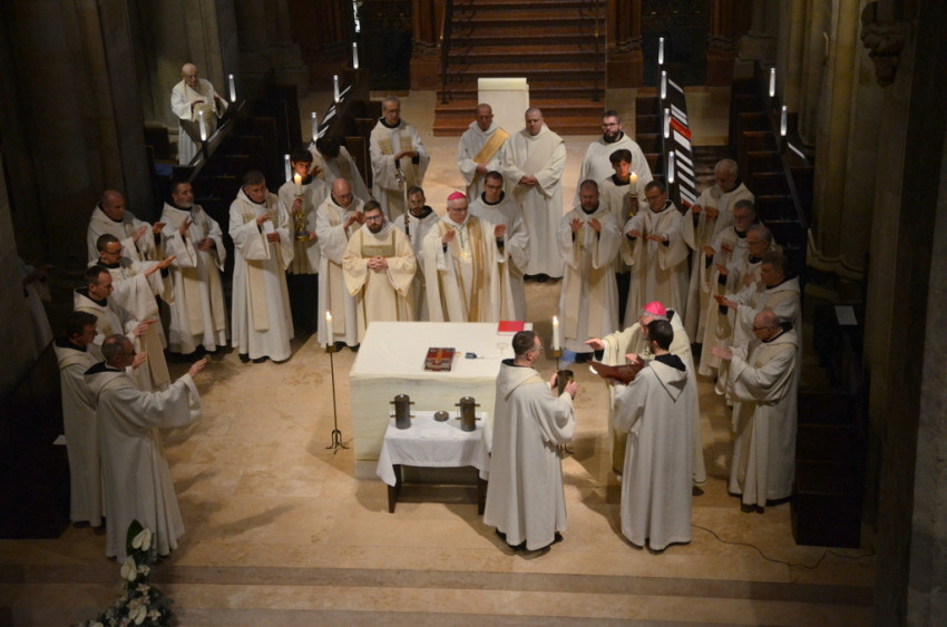 A Pannonhalmi Főapátságban április 16-án, nagyszerdán mutatták be a krizmaszentelési szentmisét.