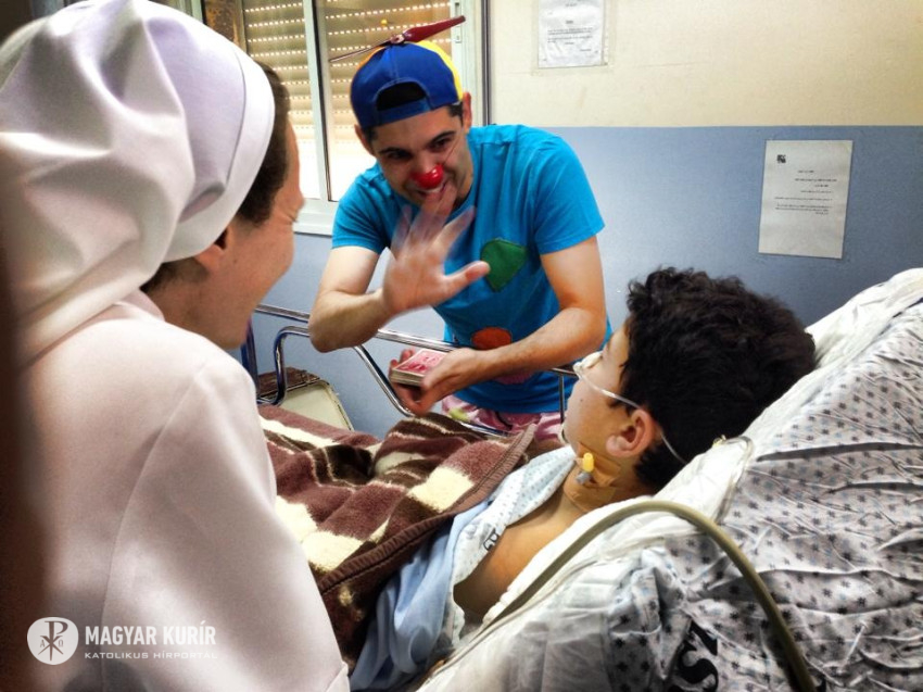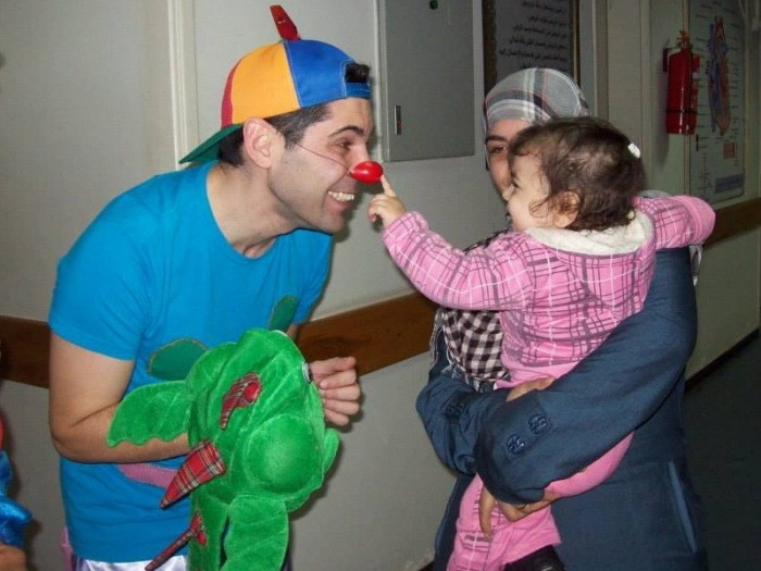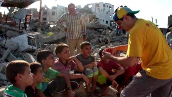 Marco Rodari 38 éves tanár az olaszországi Leggiunóból (Varese), aki önkéntesként tíz évig dolgozott különböző kórházakban, bohócként járta a kórházi gyerekosztályokat, és jó hangulatot varázsolt a beteg gyerekek köré. Majd fogta tarka, propelleres sapkáját és útnak indult oda, ahol háború és pusztítás uralkodik: már 25 utazást tud a háta mögött Irak, Egyiptom, Jordánia és Palesztina háborús övezeteiben. A piros bohócorr augusztus óta Gázában tűnik föl a törmelék és romok között.