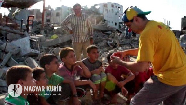 Marco júliusban a jeruzsálemi Szent József kórházban dolgozott a gyerekekkel, akiket ide szállítottak a Gázai övezetből, hogy orvosi kezelést kapjanak. Augusztusban Gázában, az egyetlen katolikus plébánián ütötte fel tanyáját. Egyik napról a másikra él, és igyekszik minden lehetőséget megragadni, hogy egy kis örömet csempésszen a gyerekek és az emberek életébe az iskolákban, egy elsősegély-állomásokon, családlátogatáson, vagy egyszerűen csak az utcán, ahol találkozik az emberekkel. Maga köré gyűjti a gyerekeket a romok közül és bemutatót tart nekik. Gyorsan felhangzik a nevetés a törmelékhegyek között guggoló kis csoportban. Egy színes léggömb, egy kis bűvésztrükk, egy grimasz a gumiarcon: mindez elegendő, hogy megtörje a pillanat komolyságát és a bohócterápián keresztül egy kis nyugalmat és megkönnyebbülést varázsoljon a gyermekeknek.