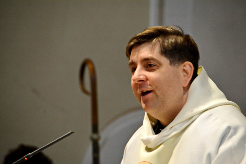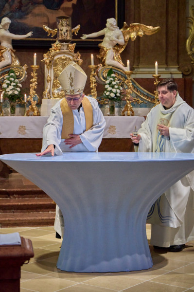Megjegyezte, hogy talán szokatlannak tűnik az oltár színe, de a templombelső színpalettájának legérdekesebb eleme a kék különböző árnyalatainak skálája, amik a mennyezeti freskókon és az ablakokon is megjelennek. Ezzel harmonizál az új oltár kékje. A tartományfőnök rámutatott egy fontos teológiai jelentésre is, mely teljesebbé és érthetőbbé teszi az oltár színvilágát: a templomból feltörő vízforrás biblikus és teológiai motívuma különös szépséggel és mélységgel kap értelmet az új oltár színvilágában.