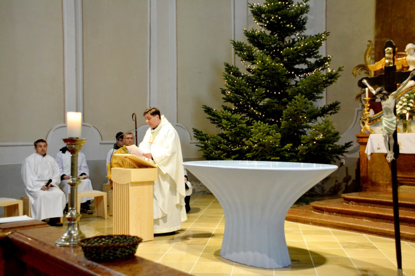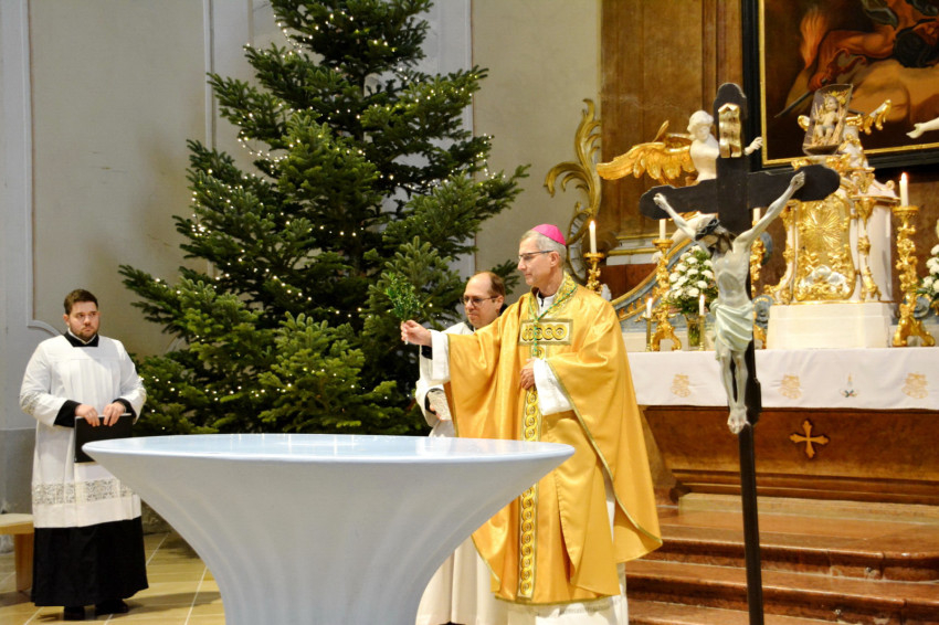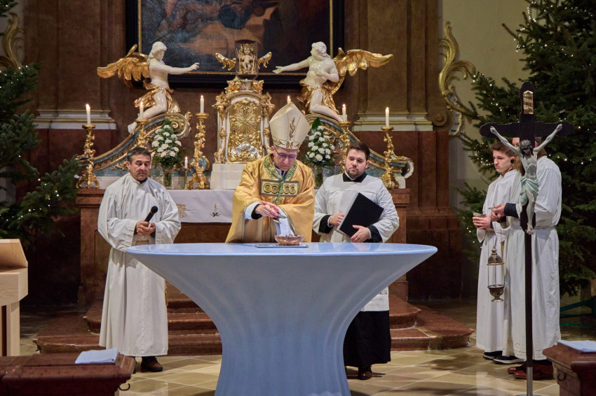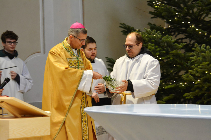 Martos Balázs Levente püspök szentbeszédének kezdetén felelevenítette az idei karácsony egyik kedves emlékét, a fiatalok által előkészített templomi betlehemes játékot, amely egy katakombában játszódott Krisztus születése után mintegy hatvan esztendővel. Az összegyűlt keresztények már alig emlékeztek arra, ami Jézussal történt, hogyan is született, milyen volt az élete. Csak egy néma tanúja van az eseményeknek, egy öreg pásztor, aki ott volt annak idején a betlehemi jászolnál. Végül megoldódik az öregnek a nyelve és elmesélte Jézus történetét. „A gyerekek szívük teljességéből mondták ki azt, amit magunk is igyekszünk megérteni: hogy Krisztus itt járt! Igyekszünk ehhez minden évben közelebb kerülni, és