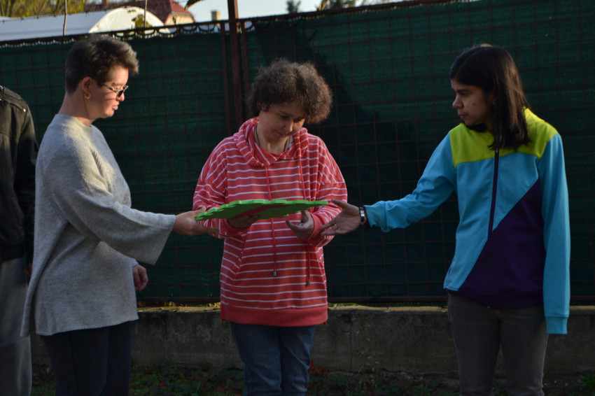 A lakóknak erre a napra ügyességi játékokkal készültünk. (…) Változatos ötletekkel rukkoltunk elő, hogy véletlenül se jusson eszébe egyiküknek sem unatkozni, de a szórakozás mellett együtt és személyesen is fejlődtek. Gyakorolhatták a csapatmunkát, különféle fejtörőket kaptak, illetve sikerült becsempésznünk bizalmi játékokat is a forgószínpad-szerű programunkba. (…)