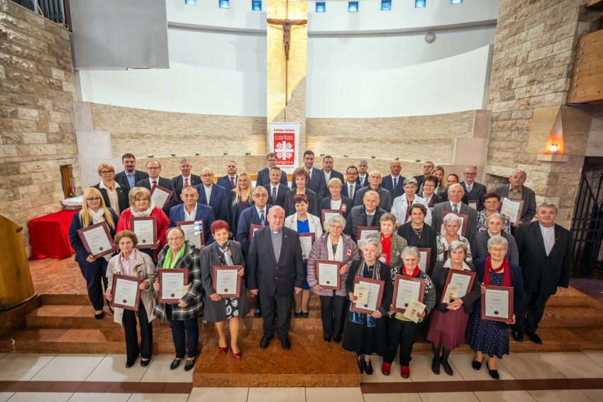 Egyházmegyénként sorra szólították a Caritas Hungarica-díjazottakat. Écsy Gábor, Zagyva Richárd, valamint az adott egyházmegyei igazgató adta át az ünnepelteknek az elismerő oklevelet, egy különleges karitászjelvényt és a kitüntetésben részesülőket méltató kiadványt.