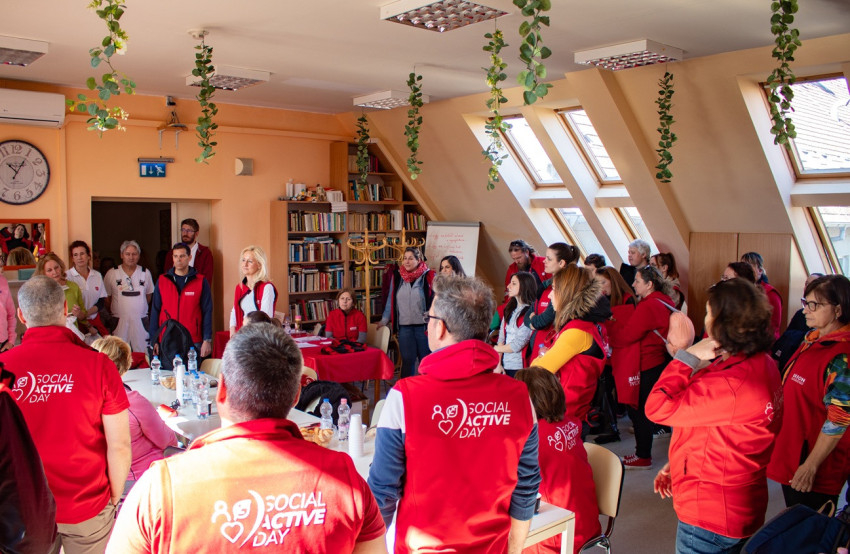 Miután összegyűlt a csapat, Tencz Beáta PR-vezető köszöntötte az önkénteseket a biztosító társadalmi aktivitási napján. A Máltai Szeretetszolgálat Közép-Magyarországi Régiója nevében Molnár Tamás ügyvezető elmondta, hogy a hatalmas intézményben sok olyan feladat van, amelyre nem jut idő, kapacitás, szakember, ezért különösen nagy segítség, amikor az önkéntesek elvégzik ezeket a munkákat.