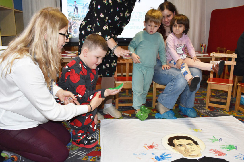 A program fénypontjaként a nagy tanító életnagyságú, vászonra festett képmása mellé – amelyet Szemák Zsuzsa rajztanár alkotott meg sok-sok szeretettel erre az alkalomra –, minden résztvevő odahelyezte tenyere lenyomatát.
