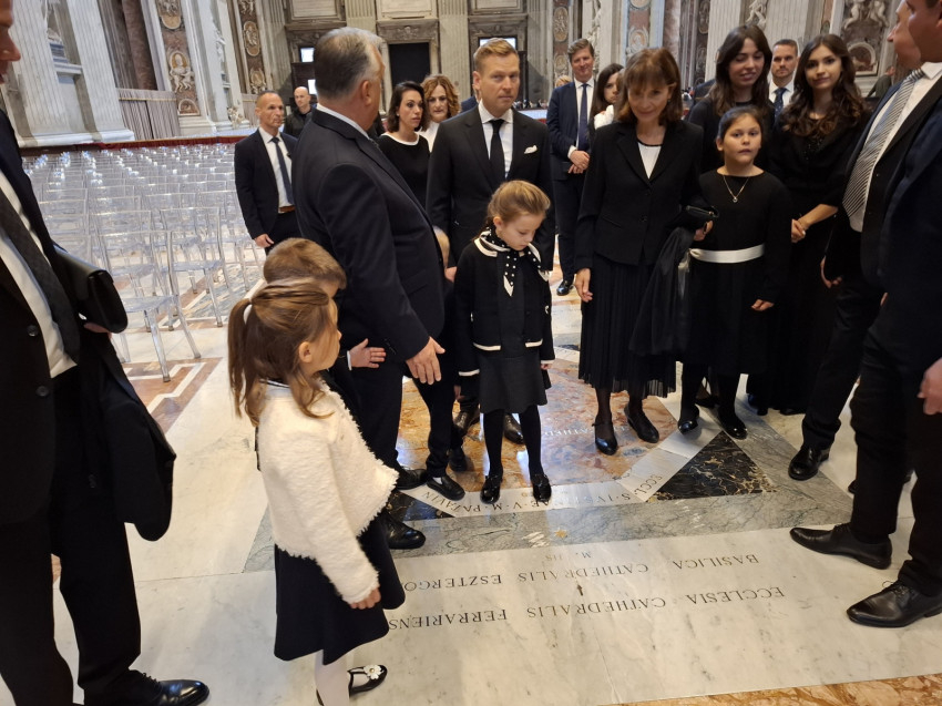 A hétfő reggeli szentmisét az Orbán család kérte, hogy lelkileg készülődjenek a Szentatyával való találkozásra, mint ahogy ezt korábban is tették a korábbi pápáknál tett látogatásaik esetében. Kifejezetten kérték, hogy ne legyen külön, zárt körű szentmise, hanem az egyik szokásos reggeli, olasz nyelvű szentmisébe kapcsolódnának be a bazilikában. Jorge Romero argentin szerzetes pap volt éppen szolgálattevő a Szeplőtelen Fogantatás Fiai kongregációból, aki olasz nyelven celebrálta a szentmisét. A napi olvasmány nyomán Pál szavait értelmezte, aki a Galatáknak írt levélben arról tanít, hogy „nem a szolgaság lelkét kaptátok, hogy továbbra is félelemben éljetek, hanem a fogadott fiúság Lelkét nyertétek el, általa szólítjuk őt így: Abba, Atya”. Ez az istengyermekség ajándéka, melyet a keresztségben kapunk – szólt az argentin atya, majd megkérdezte, hogyan mondják magyarul azt, hogy „istengyermekség”, és szépen, többször is megismételte a szót magyarul.