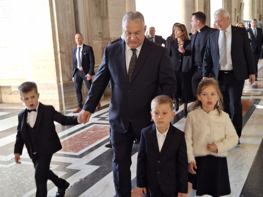A bazilikán keresztülhaladva az éppen arra járó magyar zarándokok és többen idegenek is üdvözölték a miniszterelnököt, aki innen a Damazusz-udvarba ment a kíséretével, ahol a pápai Svájci Gárda kormányfőnek kijáró tisztelettel köszöntötte a delegációt. 9 órakor pedig Leó pápa fogadta dolgozószobája ajtajában a magyar miniszterelnököt, majd zárt ajtók mögött kezdődött kettejük beszélgetése.