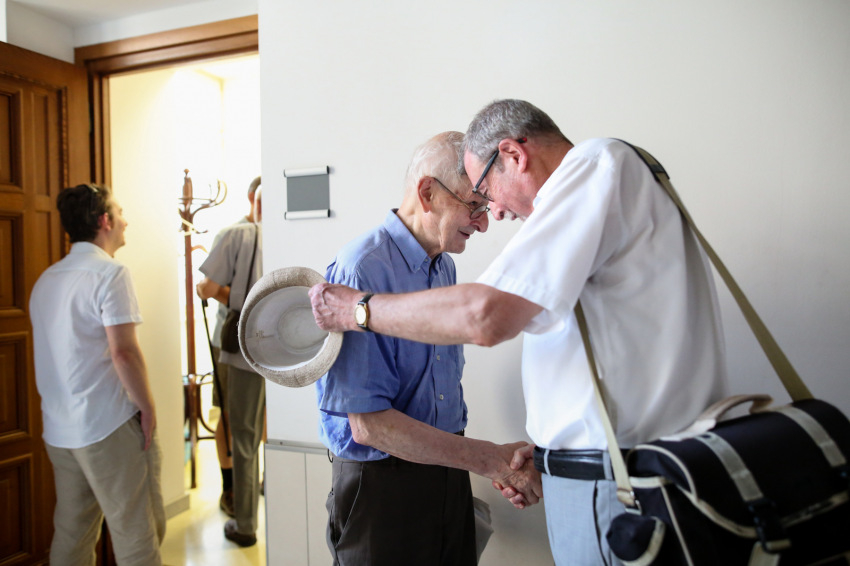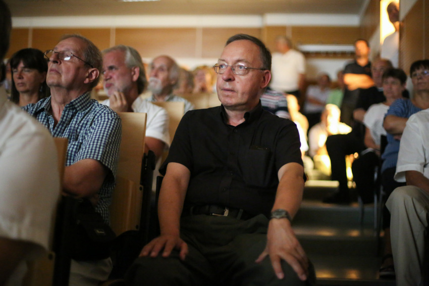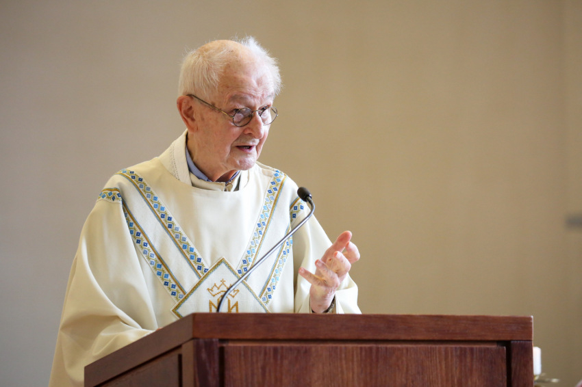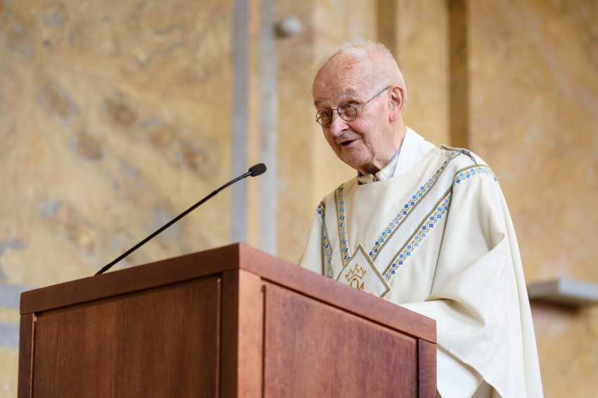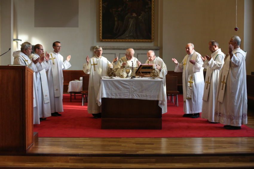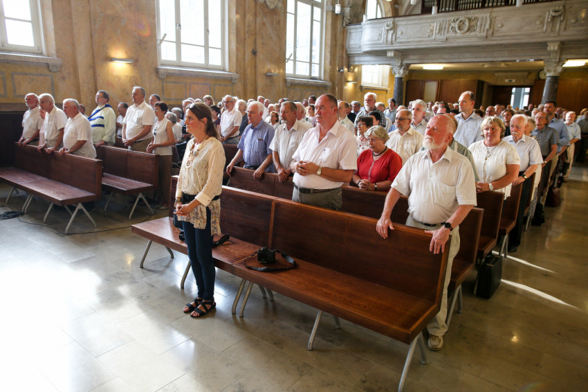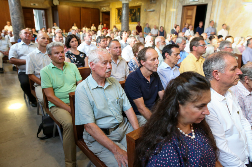 A szentmise főcelebránsa mellett rendtársai, paptestvérek álltak az oltár körül, a padokban egykori tanítványok, sokan feleségeikkel, gyerekeikkel és unokáikkal. Nemzedékek, ahol a nagyapa és az apa után a gyerekeket is a piaristák tanítanak. „Hitre, tudásra, szép életre, jóra. Példaadója!” – hangzott fel az ünnepen a Himnusz Kalazanci Szent Józsefhez.