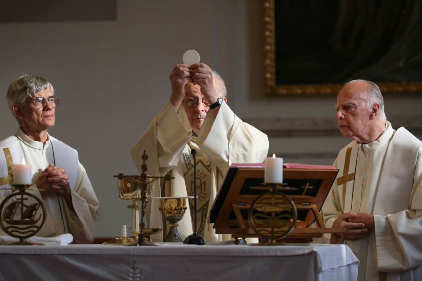 Jelenits István szentbeszédében a farizeusi magatartást bemutató evangéliumi szakaszhoz fűzte gondolatait. Személyes hangon vallott életéről, életszakaszainak egy-egy meghatározó tapasztalatáról. Feltette a kérdést: milyen világban, milyen emberek között kellett Jézusnak helytállnia? És párhuzamot vonva eddigi életével: neki milyen korok, körülmények között kellett felnövekednie, döntéseket hoznia, helytállnia, s később, Kalazanci Szent József példáját követve a rá bízottakat kísérni? Felidézte gyerekkorának háborús éveit, gimnazista tanulmányait a kereszténységet eltörölni akaró kommunista uralom közepette, végül a ma szabadságát és bőségét, sokszínűségét, amikor meg kellett válaszolnia önmagában a kérdést: milyen utat kínál neki Isten.