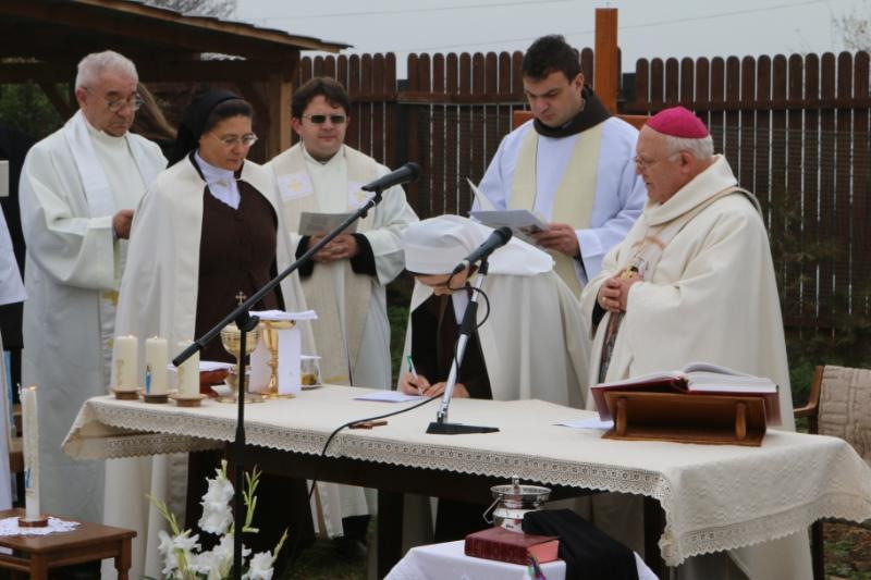 A Tamás József püspök által a kolostor kertjében bemutatott szentmisén közel kétszázan vettek részt.