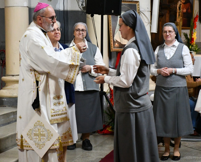 Homíliájában Marin Matieș plébános mindenekelőtt Andreea nővérhez intézte szavait: „Hálát adunk Istennek a hivatás ajándékáért. Ez kegyelem, meghívás, amelyre az ember válaszolhat. A mai fogadalmad, Andreea nővér, jel ebben a világban, mert a megszentelt életet élő személyek, a szerzetesek és apácák Istent mutatják meg a világnak.”