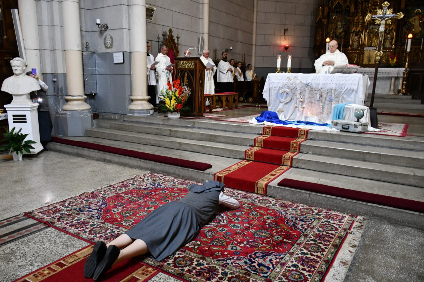 Miután nyilvánosan kifejezte szándékát, hogy Jézus Krisztust a szegények személyében szolgálja, a Mindenszentek litániája alatt Andreea nővér az alázat és az Istennek való teljes odaadás jeleként a földre borult.