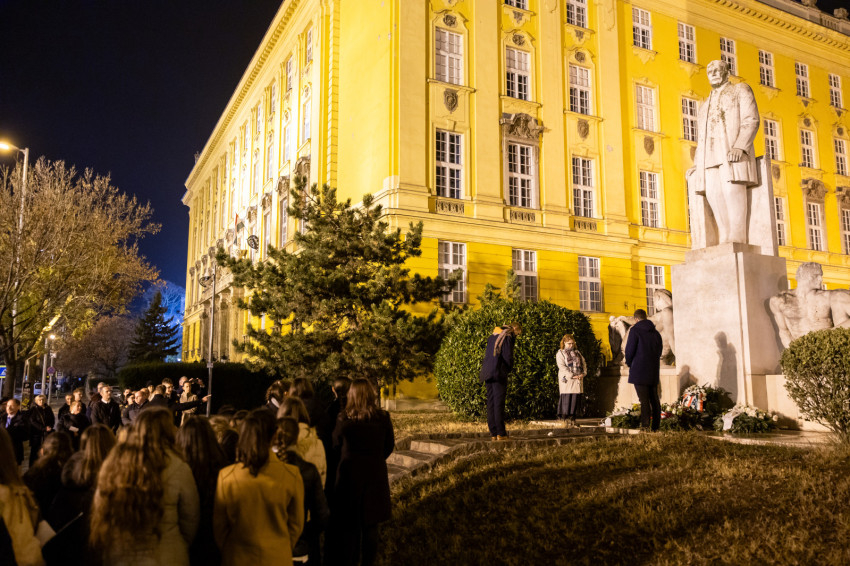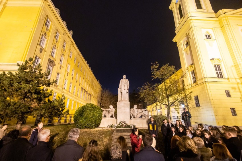 A megemlékezés után a résztvevők koszorút helyeztek el Klebelsberg Kunó szobránál, tiszteletük jeléül.