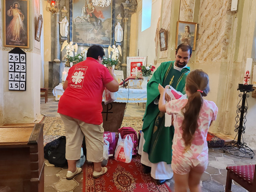 A gyűjtés során közel 300 000 ezer forint értékben sikerült iskolaszereket összegyűjteni a csoportnak, mellyel 9 településen 55 gyermeknek tudtak segítséget nyújtani. A csomagok szentmise keretében Szalontai István Balázs plébános megáldását követően kerültek átadásra.