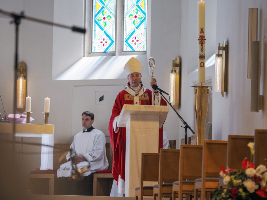 A főpásztor szentbeszédében kiemelte: pünkösd ünnepén egy csodának vagyunk részesei, és kimondjuk, hogy a Lélek erejében Jézus Krisztus az Úr, mert senki sem mondhatja ki ezt, csak az, akiben a Lélek lakozik. Lelkével akarunk élni, és ez számunkra erő, bátorság, értelem és tudás.