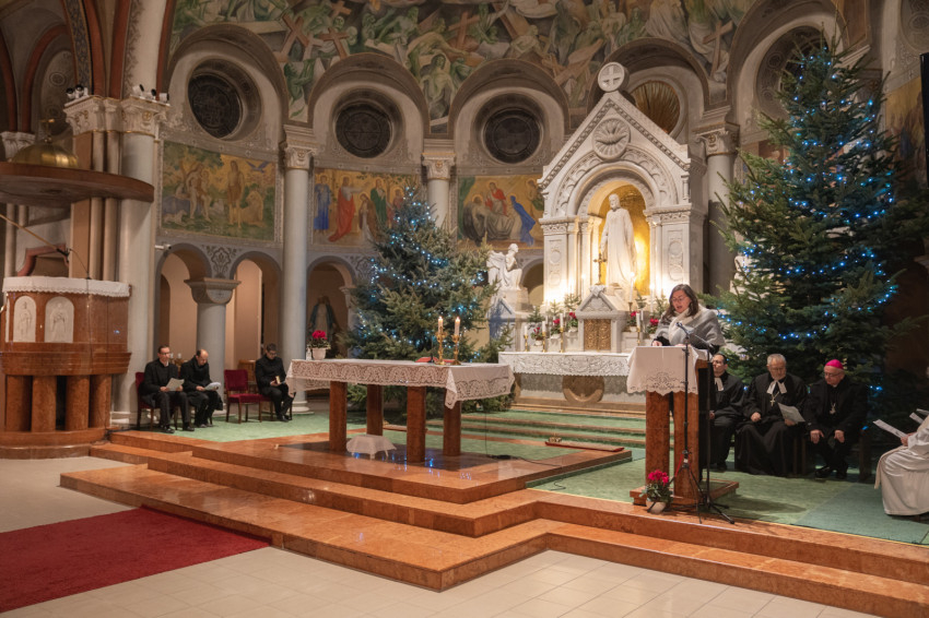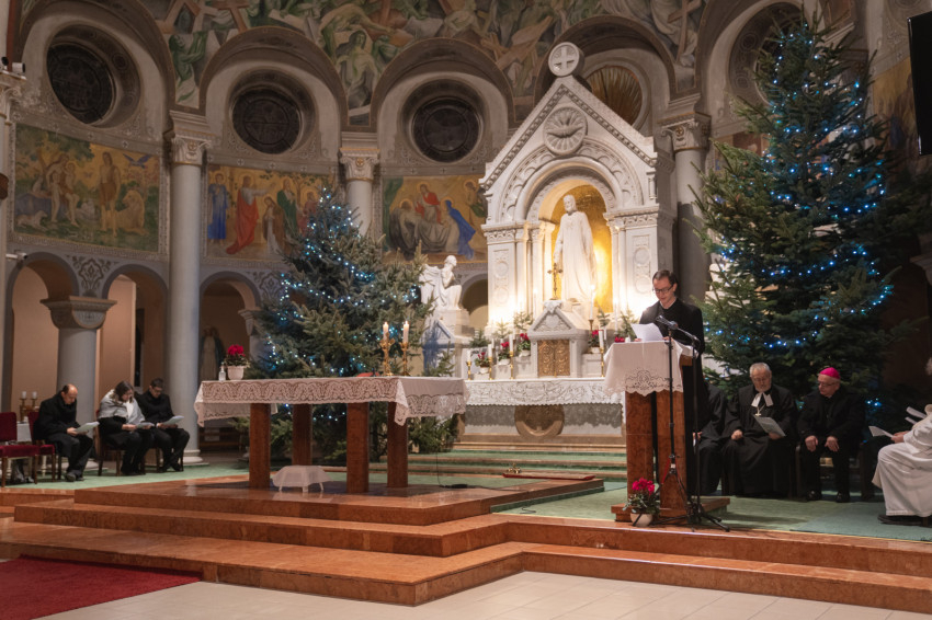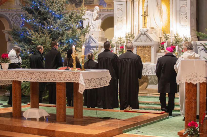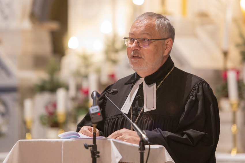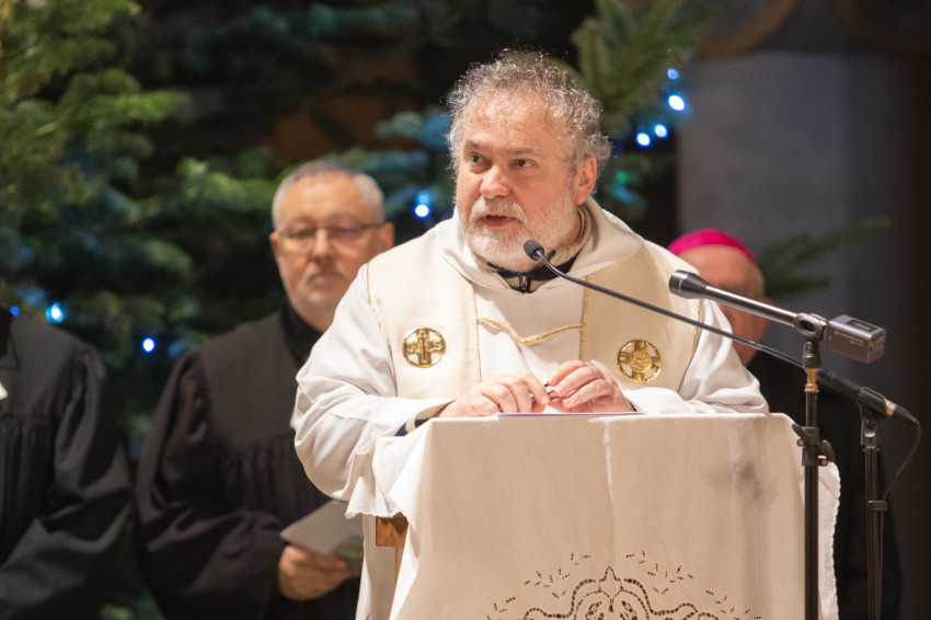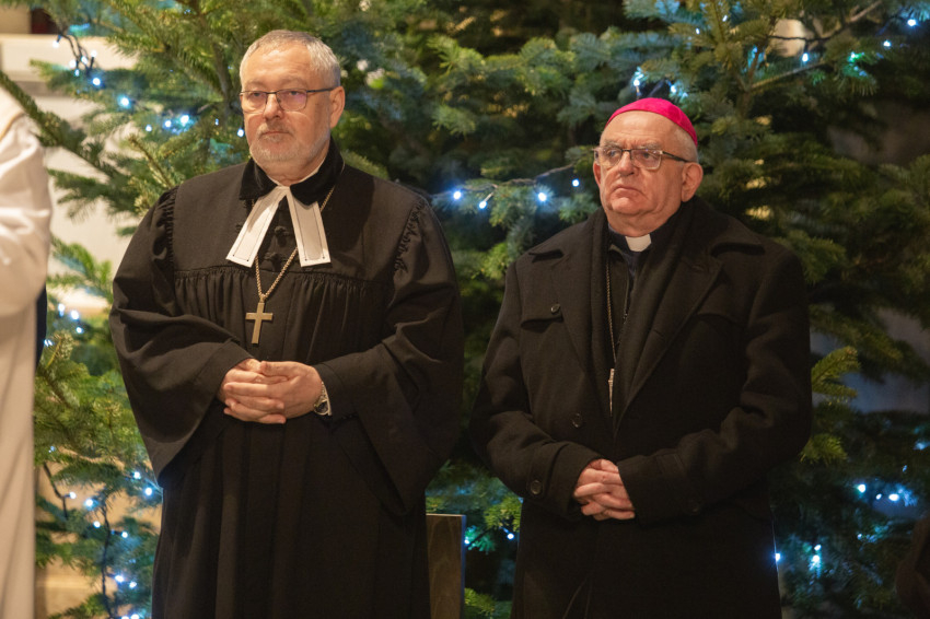 „Dicsőítsük Istent és úgy szeressük felebarátunkat, mint magunkat. A szeretet parancsolatát emlékünkbe idézve hálaadással és örömmel készüljünk arra, hogy a szeretet Istenével találkozunk – hangsúlyozta a plébános, akinek szavait követően Szemerei János evangélikus püspök hirdetett igét.”