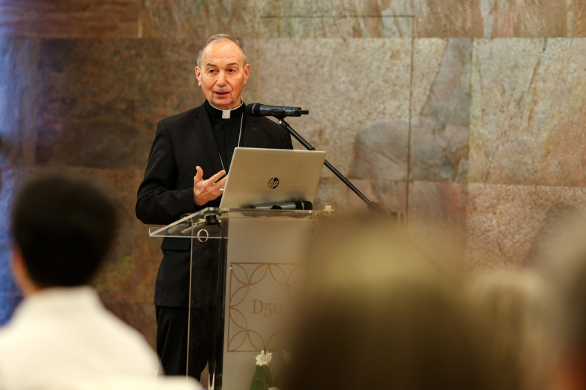 Megtelt a D50 díszterme, élénk a sokaság. Udvardy György érsek, az OHB püspök-elnöke kifejezte: örül az érdeklődésnek: „Van egy éhség a katekétákban; szeretnék az Egyház képviselőiként jól csinálni. Ugyanakkor sok bizonytalanság van az Egyház körül. Ez visszahat az ő munkájukra. Ők mint tanúk, mint az Egyház küldöttei nem lehetnek bizonytalanok. Ezért nagyon nagy a várakozás bennük. Az is látszik, hogy manapság a társadalom és a hit kérdései is az Egyház köré csoportosulnak. Ezért nagyon fontos, hogy az Egyház hitét erősítsük” – mondta a főpásztor.
