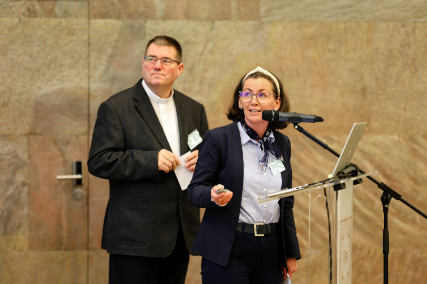 A délelőtti előadásokat tanúságtételek követték. A hivatás öröme címmel beszélt Bolla Júlia, a Székesfehérvári Egyházmegye katekétája. Sok humorral és iróniával szólt a munkájáról. „Isten gyermeke és Jézus barátja vagyok, ez a hivatásom” – kezdte bemutatkozását.