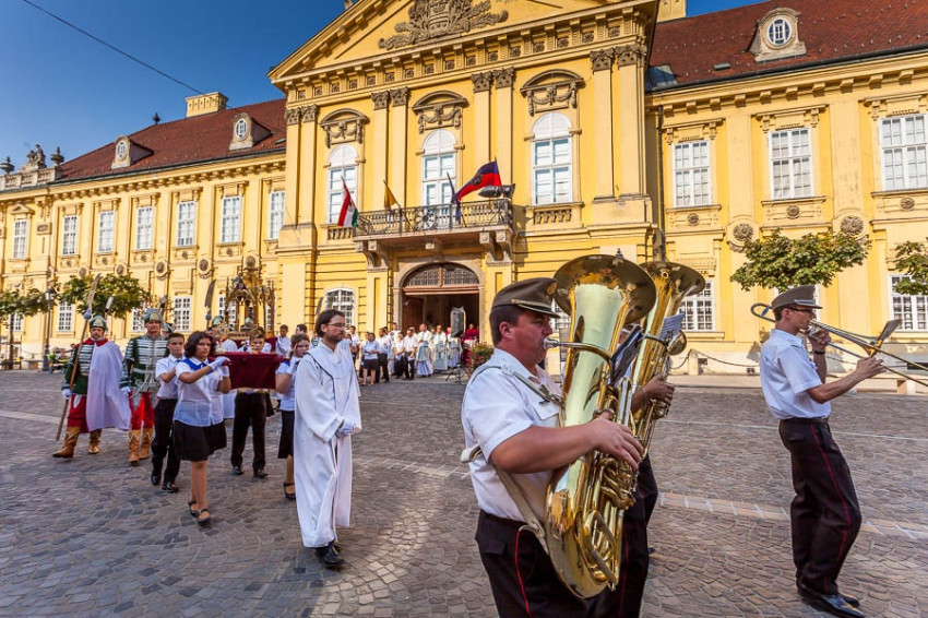 Szent királyunk, a szentéletű királynő és Imre herceg Fehérváron őrzött ereklyéit Spányi Antal megyéspüspök vezetésével kísérték a meghívott vendégek, köztük Franz Kaspar címzetes kanonok és az egyházmegye papsága; Cser-Palkovics András, Székesfehérvár polgármestere és a város képviselői; Szita Károly kaposvári polgármester, a Megyei Jogú Városok Szövetségének elnöke; Huszár István nagyváradi alpolgármester; Fejér megye vezetői; a Hagyományőrző Koronaőrök; a Szent István Lovagrend tagjai; a történelmi Vitézi Rend, a cserkészek és az egyházközségek képviselői. Vakler Anna népdalénekes, egyetemi tanár és kamarakórusa, a Vox Mirabilis kórus Mária-dalokat énekelve tették szebbé, emlékezetesebbé a körmenetet a Székesfehérvári Helyőrségi Zenekar kíséretével.