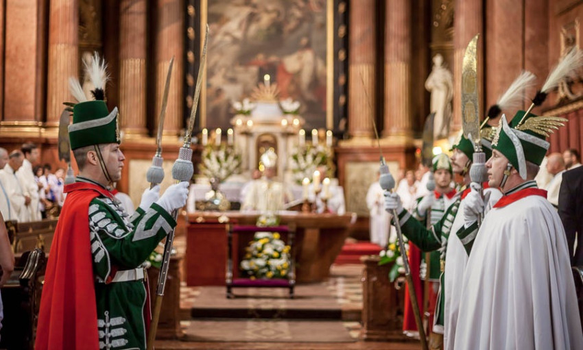 A szentmise végén a székesfehérvári püspök Szent István hermája előtt térdelve mondta el az országfelajánló imát, majd az áldások után ünnepélyes körmenettel indult vissza a díszmenet a Püspöki Palotába. „Isten előtt mellettünk állj István király” – hangzott végig Fehérvár fő terén az imádságos ének.