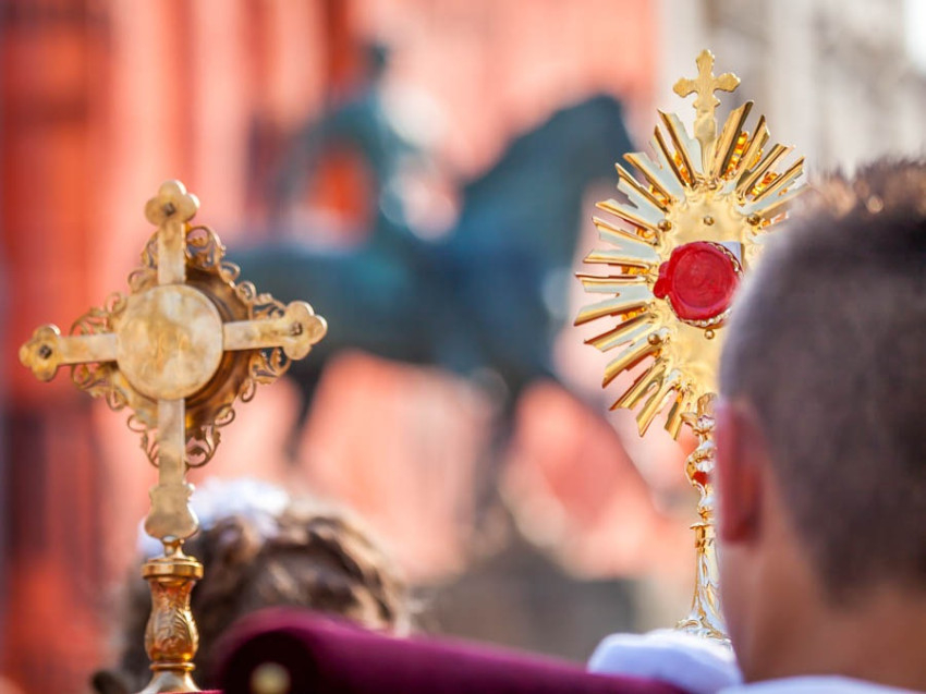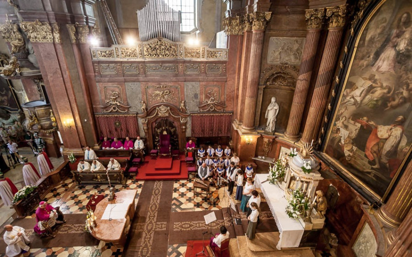 A székesfehérvári Szent Imre Általános Iskola diákjai és az egyházmegye papnövendékei körmenetben vállukra véve vitték át a székesfehérvári püspökségről a székesegyházba Szent István hermáját, Boldog Gizella és Szent Imre ereklyéit.