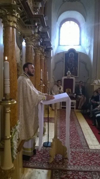 A két nyelven, ószlávul és magyarul bemutatott Szent Liturgiát Szocska Ábel első helynök vezette. Ünnepi beszédében a Szűzanyát és életét ajánlotta a jelenlévők figyelmébe: „A Szűzanya arra indít bennünket, hogy mi is tiszteletre méltó emberek legyünk”. „Napjainkban egyre fogy a tisztelet” – emlékeztetett Ábel atya. Ennek okaként már a lelki atyák tanításában foglaltakat idézte, mely szerint „azért nem tisztelnek bennünket, mert nem vagyunk elég alázatosak”. „Az alázatos élet kezdete bűneink felismerése, mert így arra tudunk figyelni, hogy minél jobb emberek legyünk. Nem az emberek tetszését kell keresnünk, hanem a Jóisten előtt kell mindenekelőtt alázatosnak lenni, úgy, ahogyan a Szűzanya mutatja ezt nekünk… az evangélium szerint kell élnünk” – tette hozzá. A helyesen gyakorolt alázat kimondja az igazságot, büntet, ha szükséges, segít, gyógyít, ételt ad és megbocsát, „de sohasem veszíti el méltóságát” – fogalmazta meg a szónok.