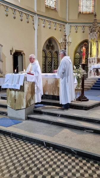10 órakor Jean-Yves Brachet OP, a világi domonkosok promotora mutatott be szentmisét a közösségnek. Prédikációjában Krisztus követésére szóló személyes meghívásunkról, valamint pünkösd ünnepéről, a Szentlélek működéséről beszélt.