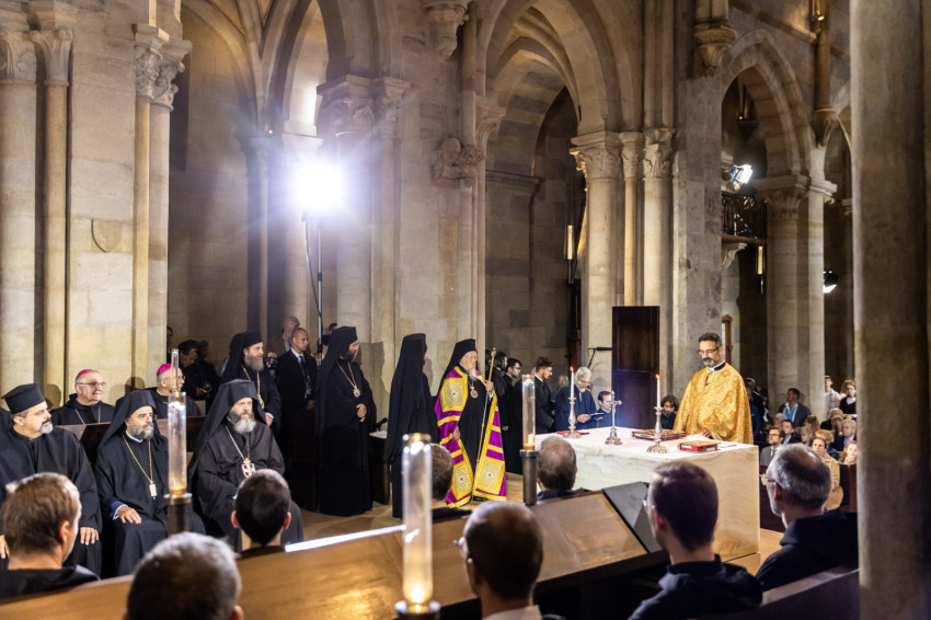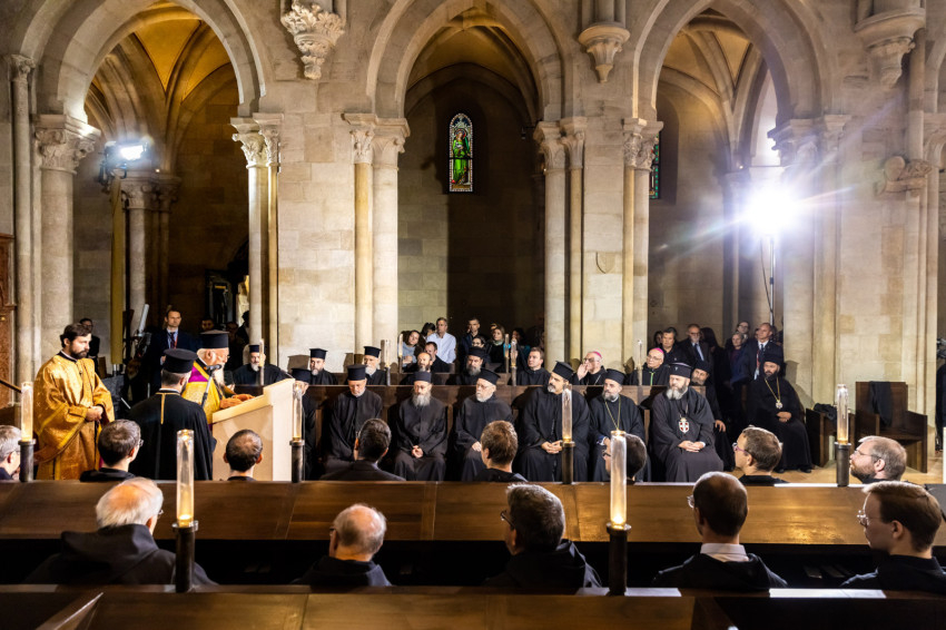 Ma egy kolostorban üdvözölhetjük, ahol testvéreink, a bencés szerzetesek szívesen látnak vendégül bennünket, és egy történelmi kolostortemplomban szolgálunk, ahol ők kegyesen helyet biztosítottak nekünk: ez a gesztus mutatja az ortodoxok és római katolikusok lelki közeledésének az elmúlt időszakban tett fontos lépéseit, amely közeledéshez szentséges atya, az Ön hozzájárulása vitathatatlan és mindenütt elismert marad, ekként megszakítatlanul folytatva és elszántsággal művelve tovább tiszteletre méltó elődeinek munkáját.