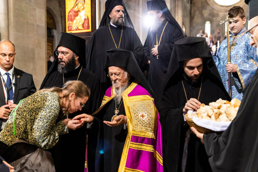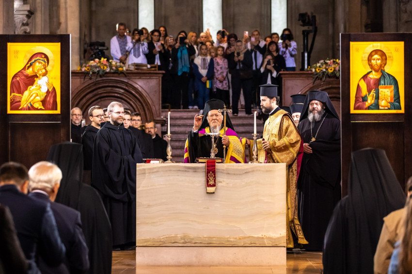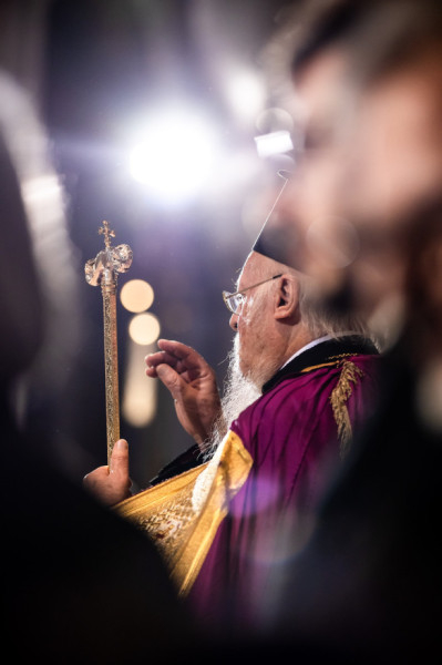 A szentélybe vonulva I. Bartholomaiosz egyetemes pátriárka megáldotta az egész közösséget. Ezzel kezdetét vette a liturgia.