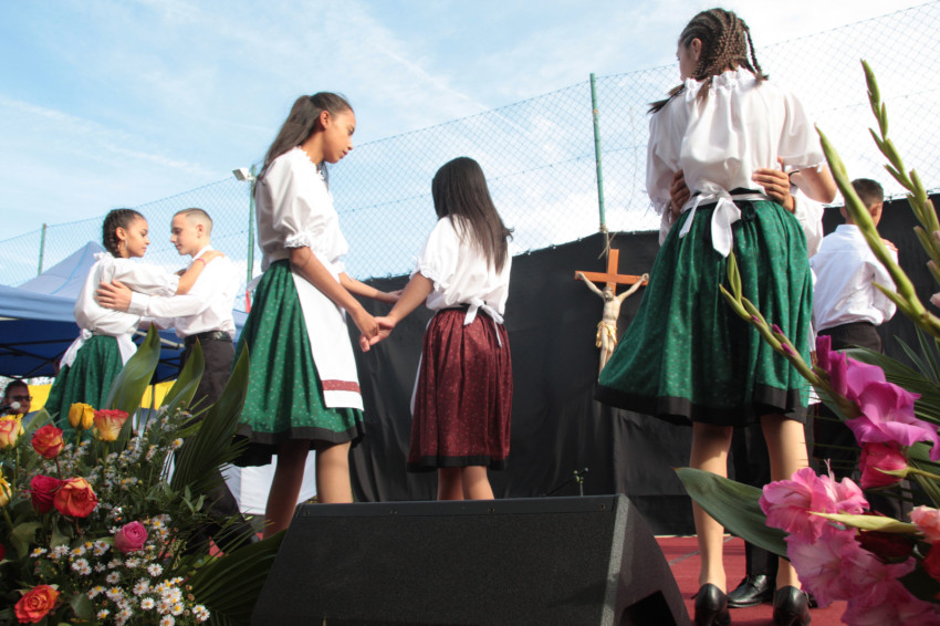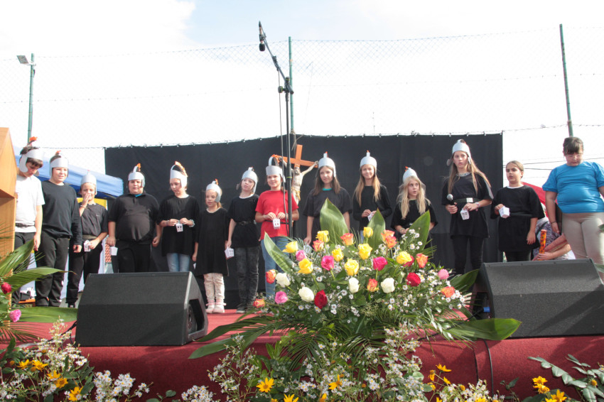 A finom szarvaspörkölt ebéd után, amit a Kaposvár mellől érkezett jótevők biztosítottak, következtek a kulturális programok. Először a verbita testvérek és atyák énekeltek különböző nyelveken, majd a vasvári és bicskei fiatalok adták elő programjukat.