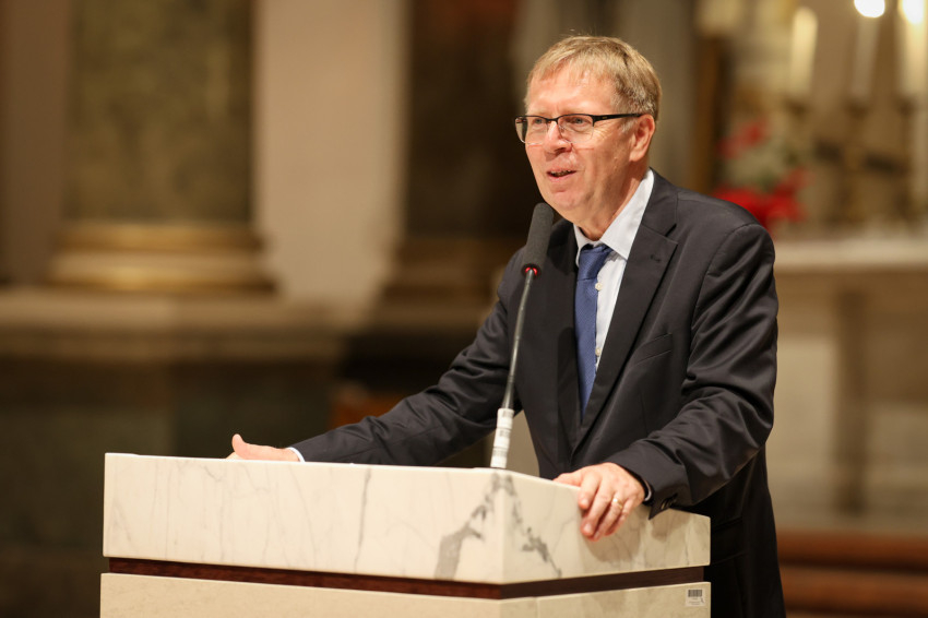Szőke Péter, a Sant’Egidio közösség budapesti és regionális felelőse köszöntőjében korunkat Káin korához hasonlította, Ukrajna, Gáza, Szudán, Kongó és megannyi egyéb hadszíntérrel. Olyan kor, amelyben a „háborút rehabilitálták, a béke eszményét gúnyosan megmosolyogják. A dzsungel törvénye, az erősebb joga érvényesül a gyengébbel szemben”. És nem csak a gyilkosok Káin követői, hanem