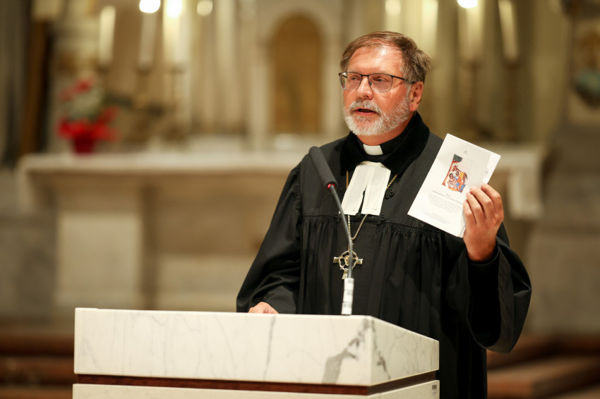 Az áldozatok nevének, történetének megrendítő felolvasását és a gyertyagyújtást követően Mohos Gábor püspök homíliájában kiemelte, mennyi szörnyűség történik ma is a világban, amelyek miatt szavainkkal, tetteinkkel példát szeretnénk adni arra, hogy szebbé lehet formálni a világot. A felolvasott evangéliumi részhez kapcsolódva – amelyben Péter a megbocsátásról faggatja Jézust – elmondta: Isten mindenki iránt egyformán irgalmas, mint a példabeszédben a király, akinek a szíve megesik a szolgán, és elengedi adósságát. Mi, emberek, bár megtapasztaljuk Isten bocsánatát, emberi kapcsolatainkban mégsem tudjuk könnyen megvalósítani.
